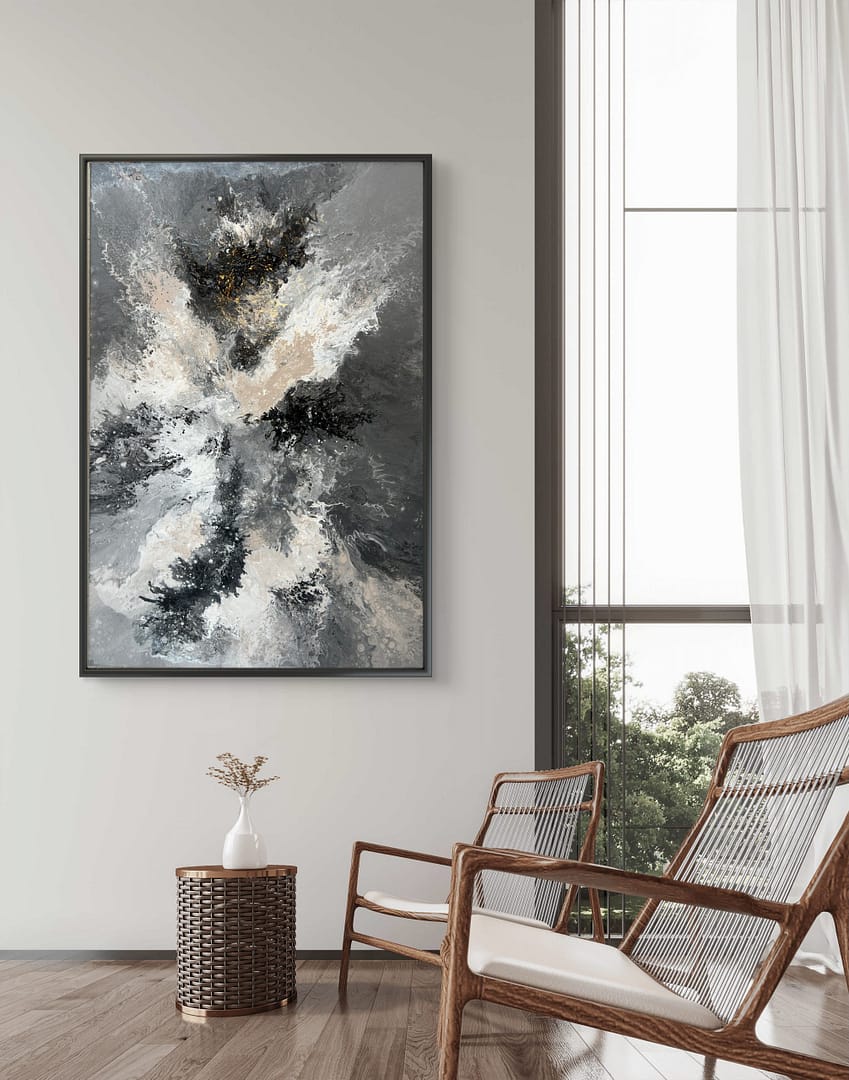 Handgemaltes Acrylgemälde mit viel Struktur auf Leinweind, inkl. Schattenfugenrahmen in Holz