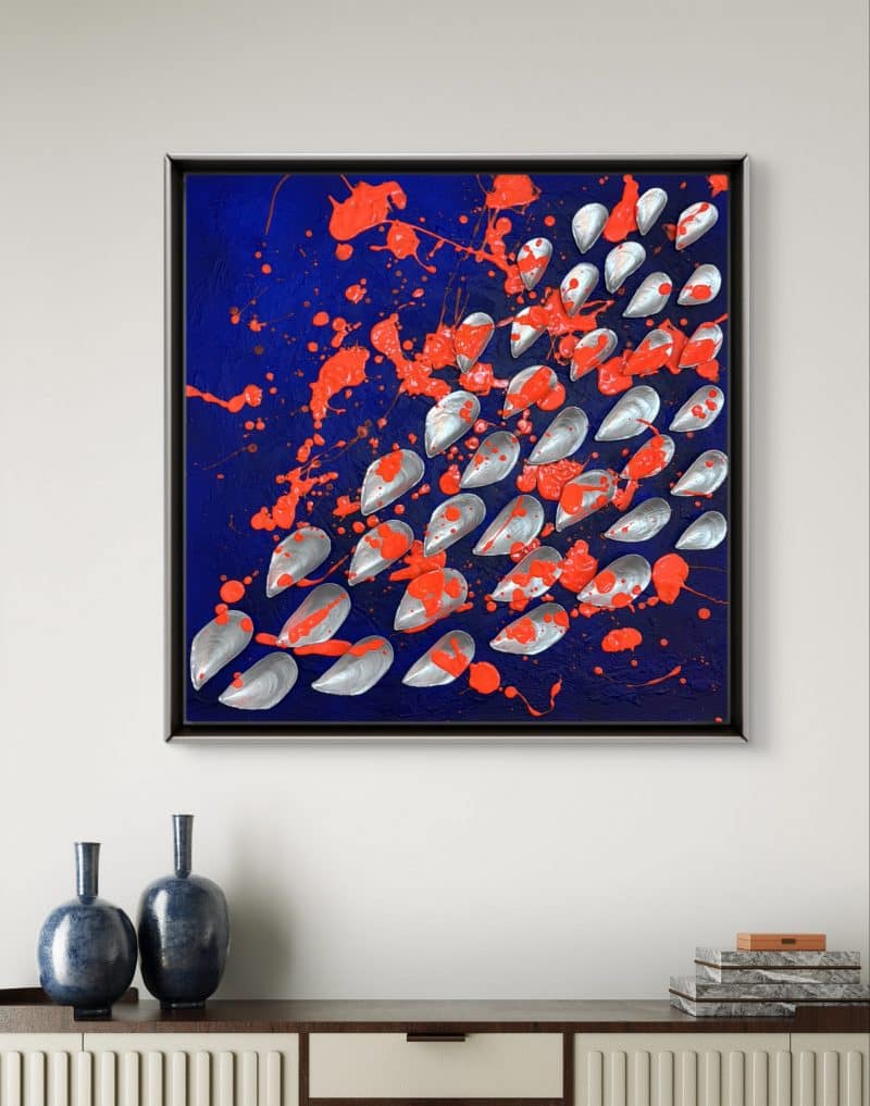 Handgemaltes Acrylgemälde auf Leinweind, inkl. Schattenfugenrahmen in Holz